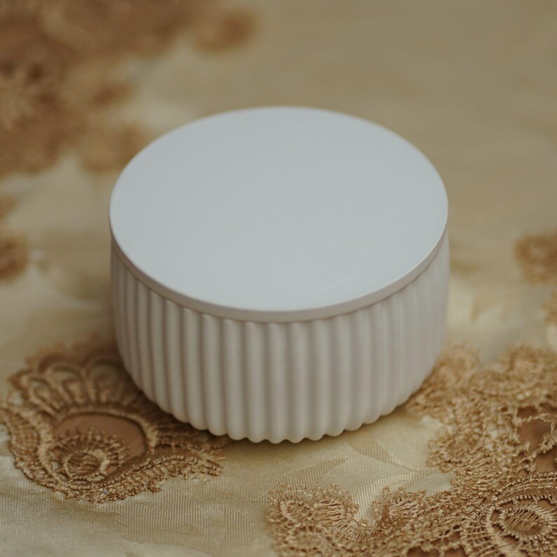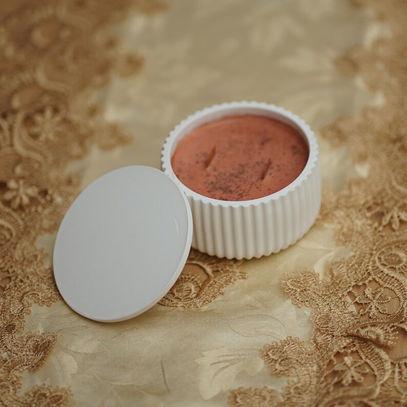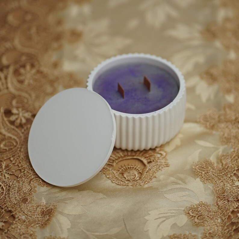 Diese stilvolle Duftkerze vereint minimalistisches Design mit nachhaltiger Qualität. Der handgefertigte Behälter aus hochwertigem Gips ist nicht nur ein dekoratives Highlight, sondern dank des passenden Deckels auch praktisch – so bleibt der Duft geschützt und die Kerze sauber, wenn sie nicht brennt.
