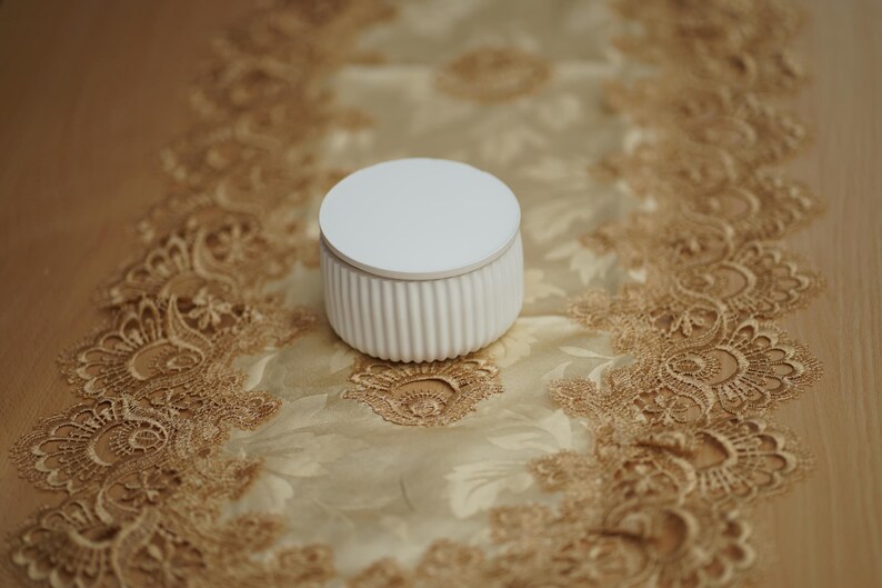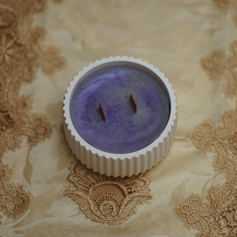 Handgegossene Sojawachskerze im Gips-Behälter mit Deckel