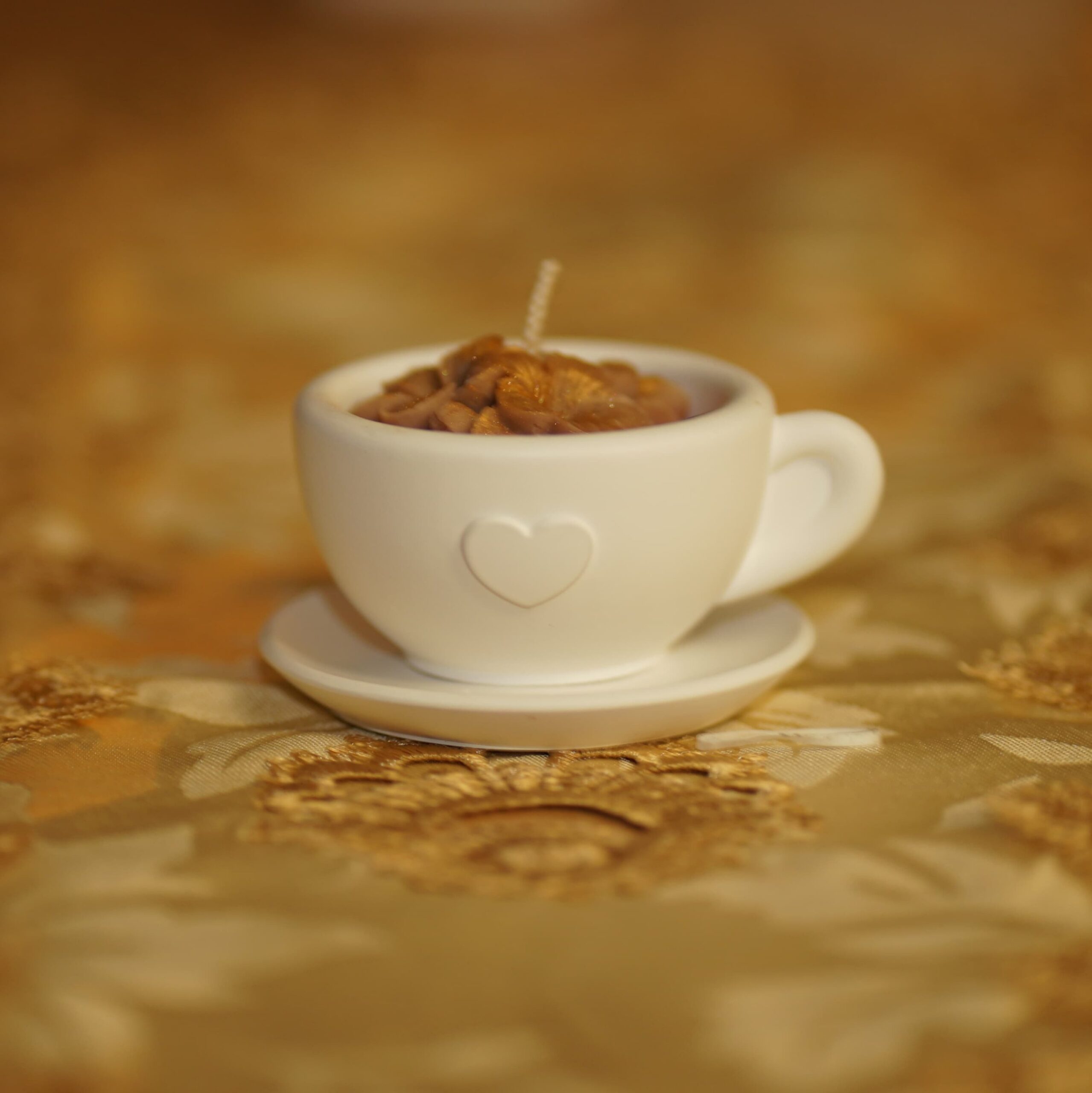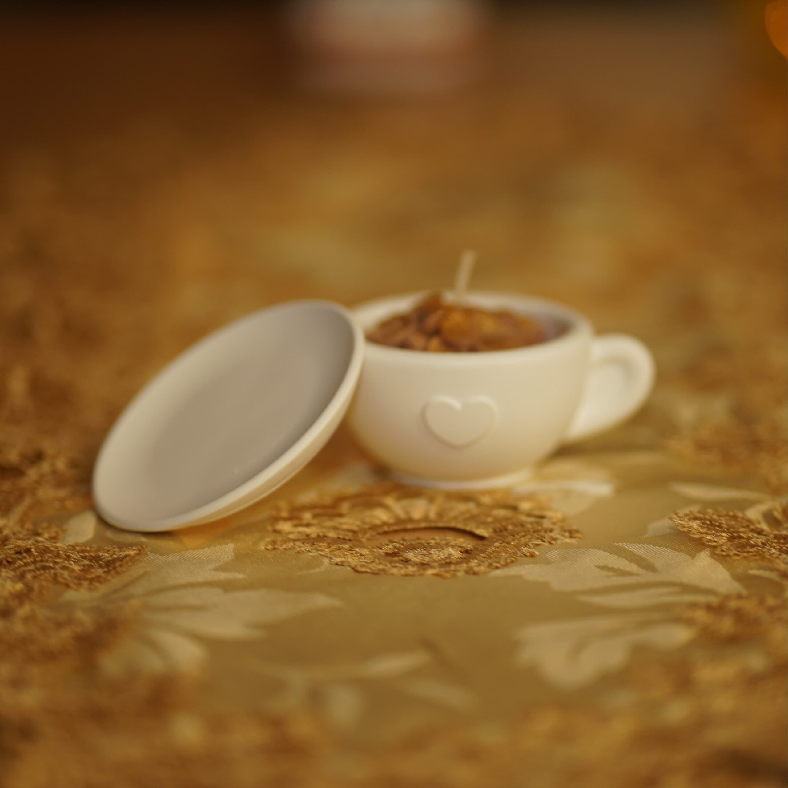 Die Kerze wird in einer einzigartigen Gips-Tassenform gegossen und kommt mit einem passenden Untersetzer – perfekt abgestimmt und ein echter Blickfang für jede Wohn- oder Geschenkidee. Jede Tasse ist ein handgefertigtes Unikat und verleiht der Kerze ihren charmanten, natürlichen Charakter.